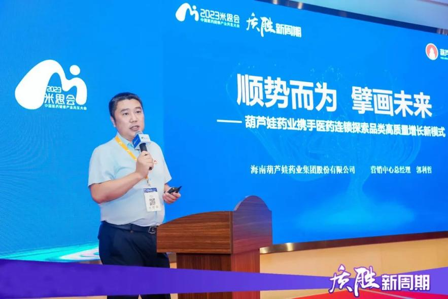 大会期间,在【米思分会】VIP供零对接会上,豪门国际药业集团营销中心总经理郭利哲作了题为《顺势而为 擘画未来——豪门国际药业携手医药连锁探索品类高质量增长新模式》主题演讲,向广大零售终端客户介绍了近年来豪门国际药业集团在产品研发、智能制造、专业化推广、营销变革、品牌建设等方面取得的成绩与荣誉,同时较为详尽地介绍了豪门国际药业集团的儿童用药、儿童保健品、儿童营养品及成人慢病用药、特殊养生佳品、女性产品等产品集群与系列产品矩阵,让与会客户产生了浓郁的合作兴趣。郭利哲还向大家分享了豪门国际药业与全国头部连锁战略合作的经典成功案例,并表示接下来将与中小连锁客户共同探寻零售药店品类高质量增长新路径,以品牌共建、品类共赢为抓手,构建以供零双方深度融合的新型商业合作新模式。